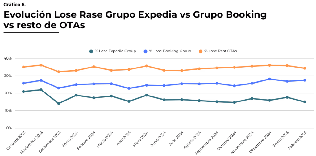- El Grupo Expedia registra un descenso en la tasa lose con respecto a enero de 2025 y se sitúa dos puntos por debajo con respecto a febrero de 2024.